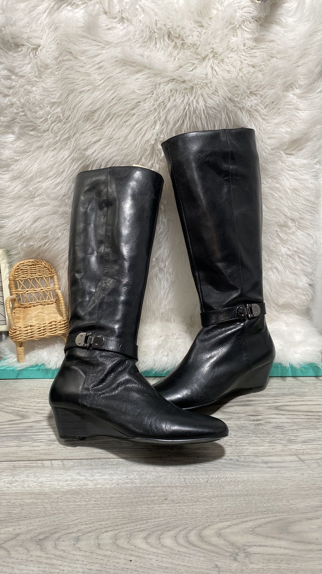 Black Leather Bandolino Adanna Wedge Boots Womens 6.5 M