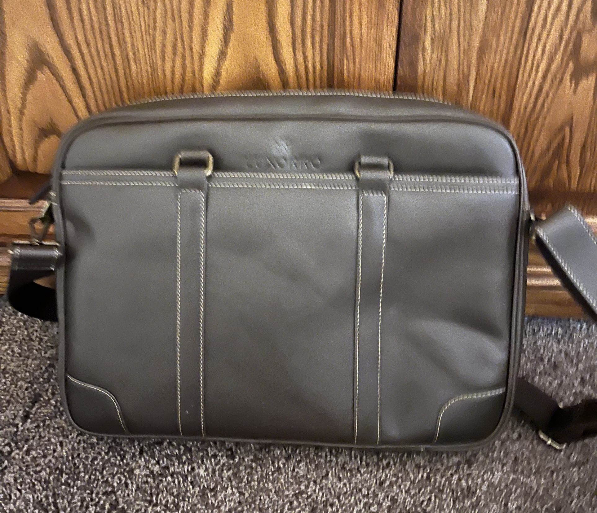 New in box, beautiful leather bag with strap, never used, for laptop, iPad or other use.