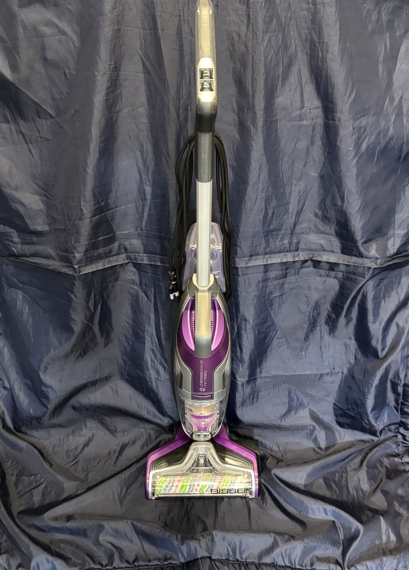 Vacuum and Wash at the Same Time With CrossWave® Pet Pro Multi-Surface Cleaner! Clean your sealed hard floors of pet messes easier than you could have ever imagined. With a Multi-Surface Pet Brush Roll rotating at 3,000 RPM and an innovative, Multi-Surface Pet cleaning solution, the BISSELL® CrossWave® Pet Pro cleans better than a sponge mop and bucket, in less time.* It includes a Pet Hair Strainer for easy cleanup and specialized pet cleaning solution to remove pet odors. Vacuums and washes your floors at the same time Designed for pet clean up, this Pet Pro model features a 3-year limited warranty, Multi-Surface Pet Brush Roll, Multi-Surface Pet Cleaning Formula, a Rinse & Clean Out Tray and a Pet Hair Strainer for easy clean up Pet Pro model includes specialized pet cleaning solution to help remove pet odors. Pet Pro Multi-Surface Pet Brush Roll is tangle free for hair up to 8 inches long, which helps minimize that annoying pet hair wrap Multi-surface cleaning—safe for sealed hard floors and area rugs Two-tank system keeps clean and dirty water separate so you are always using clean water and formula mixture on your floors Smart-touch controls on the handle allow you to easily switch between cleaning hard floors and area rugs and control your solution with an on-demand solution trigger Easy Remove Brush Window and Removable Brush Roll allow for easy cleaning and maintenance