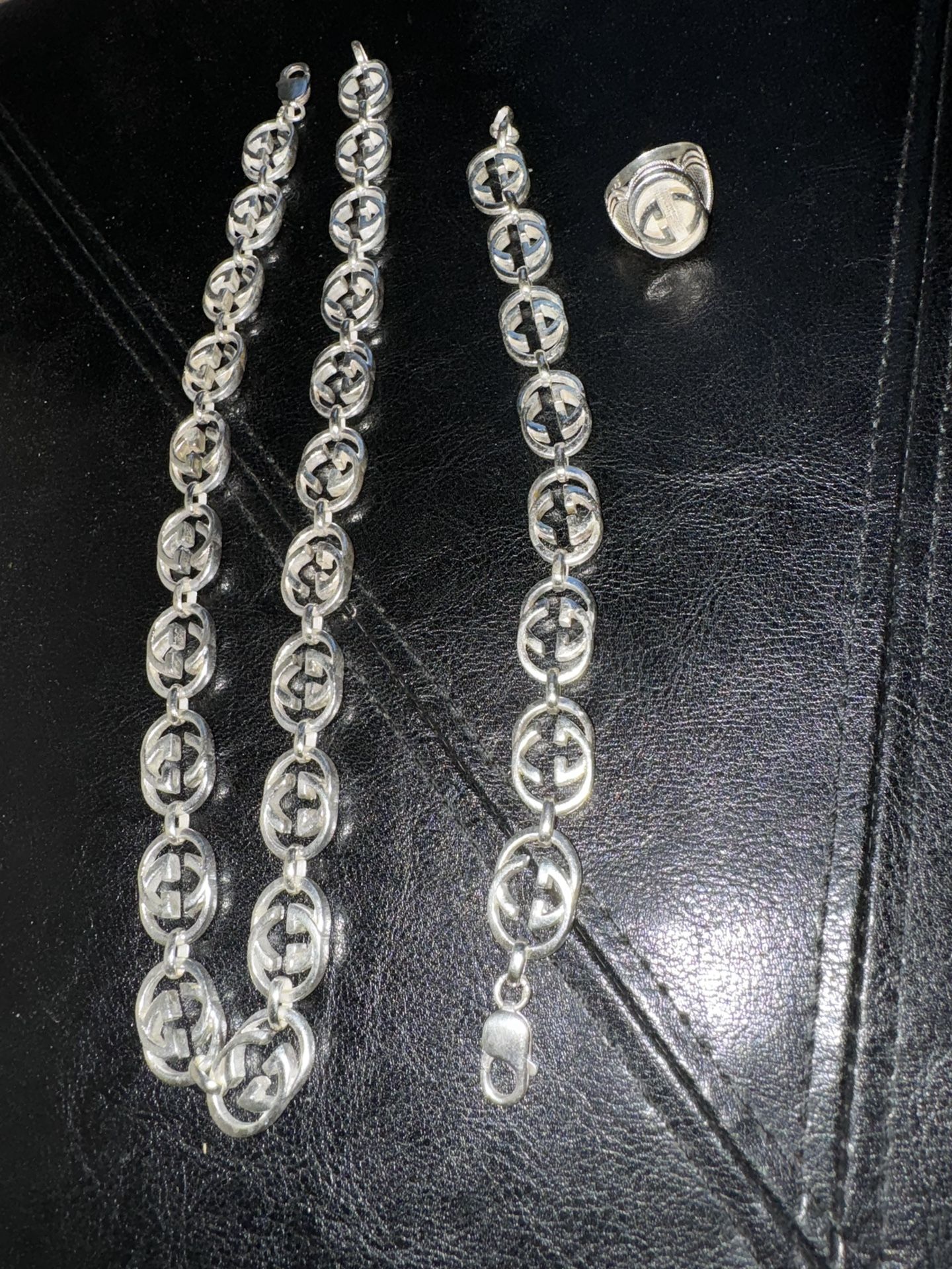 925 silver sterling jewelry set , chain , bracelet , ring , Very good condition .!