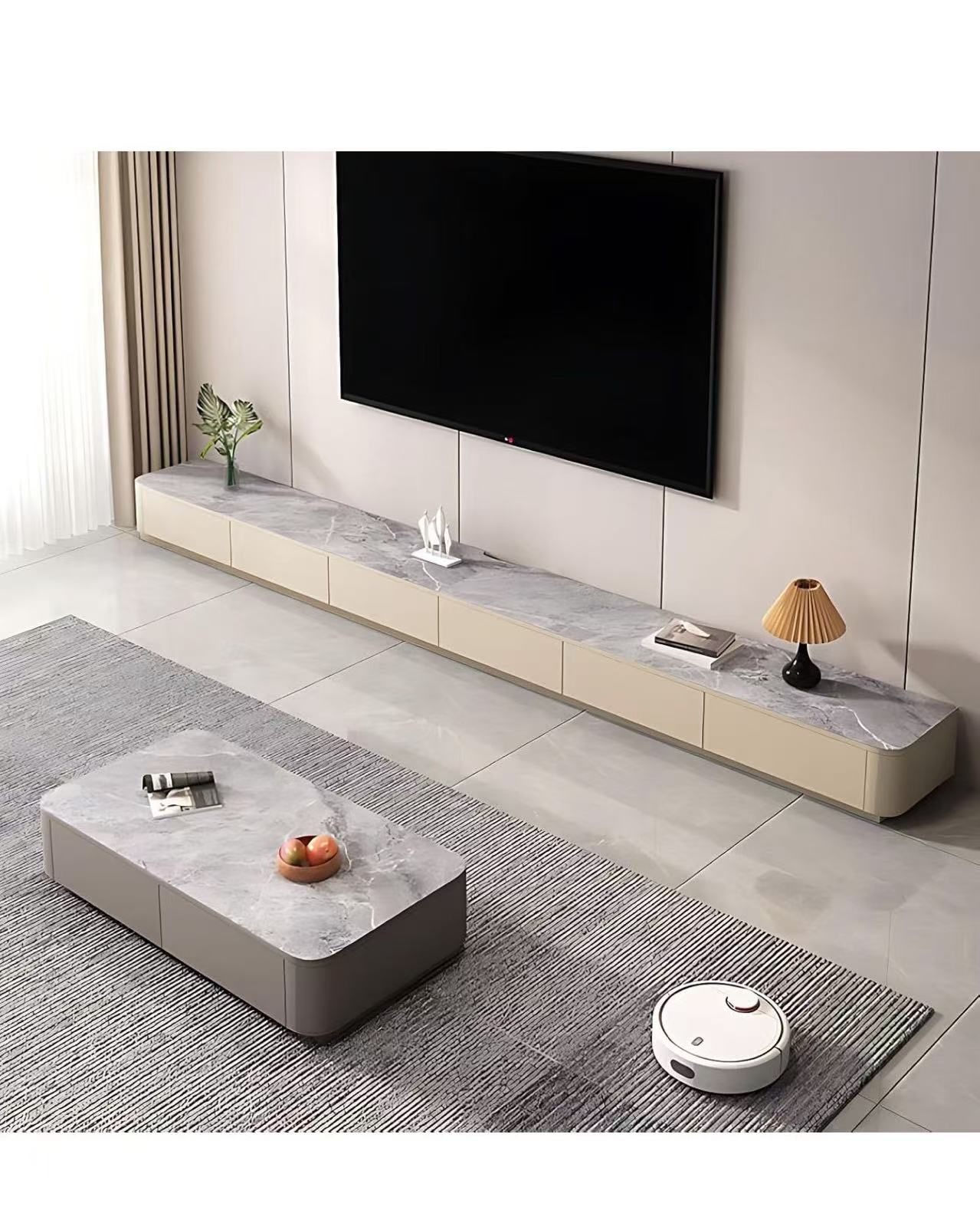 Modern TV Stand for Living Room, 142 Inch Extra-Large Stone Top TV Entertainment Center with Storage, White TV Console 6 Drawers TV Stand for 75+ Inch TV, Fully Assembled $ 299