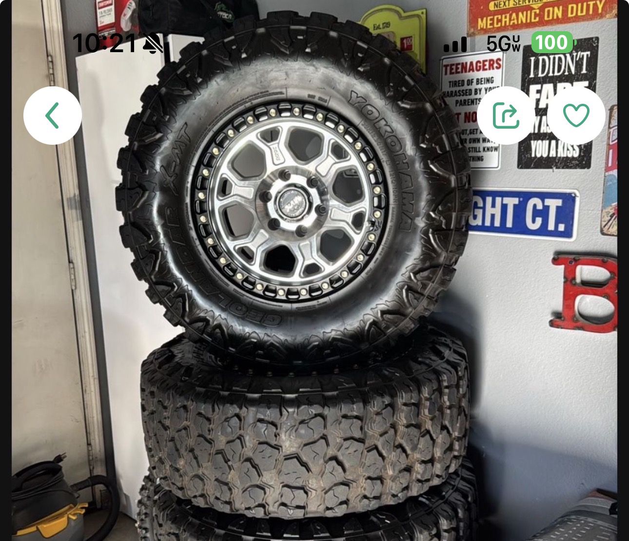35” Yokohama geolander tires 17” mvx wheels Tire sensors are installed in tires Tires and wheels have less than 500 miles on them they are brand new 1200 OBO