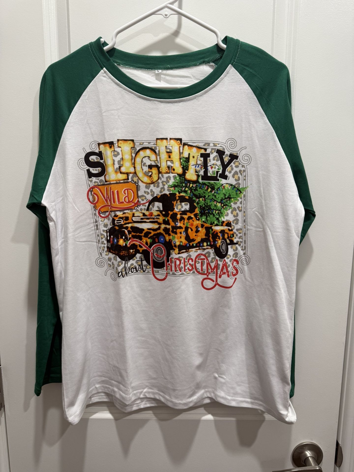 Size Large women’s “Slightly wild about Christmas” long sleeved shirt- NWOT 65% Cotton 35% Polyester