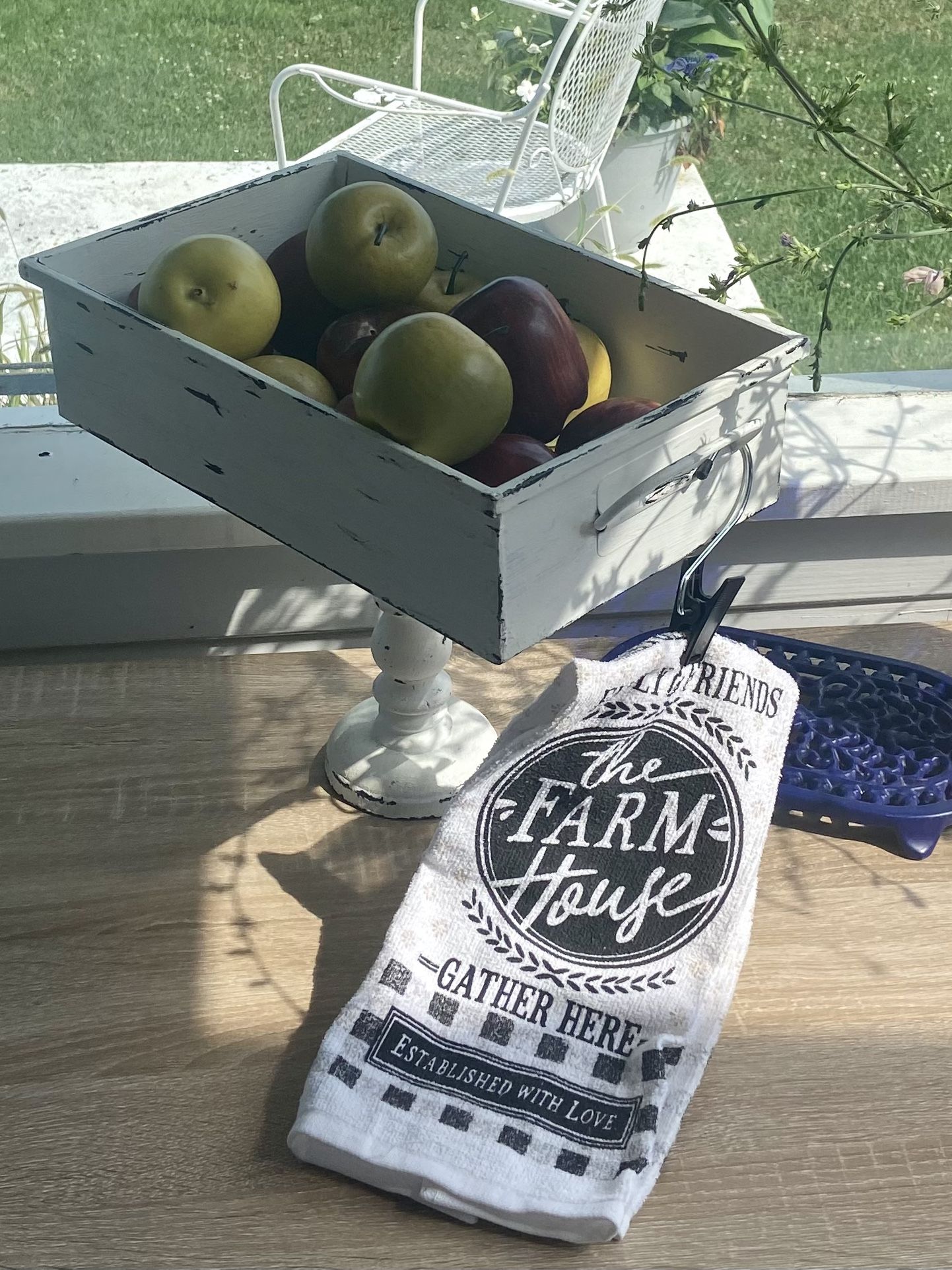 Sturdy, multiple uses, towel included, apples NOT included (LO).