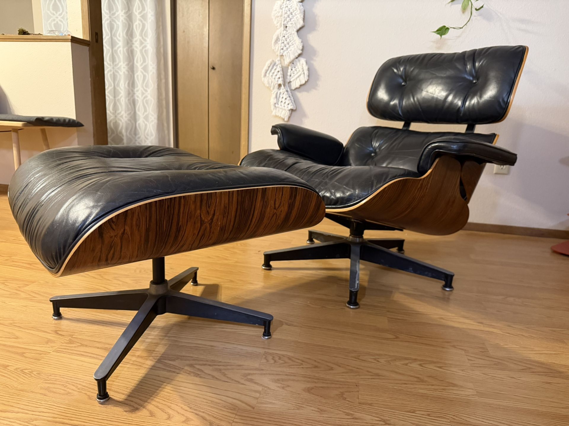 Vintage 1984 Authentic Herman Miller Eames Lounge Chair and Ottoman Brazilian Rosewood Black Leather