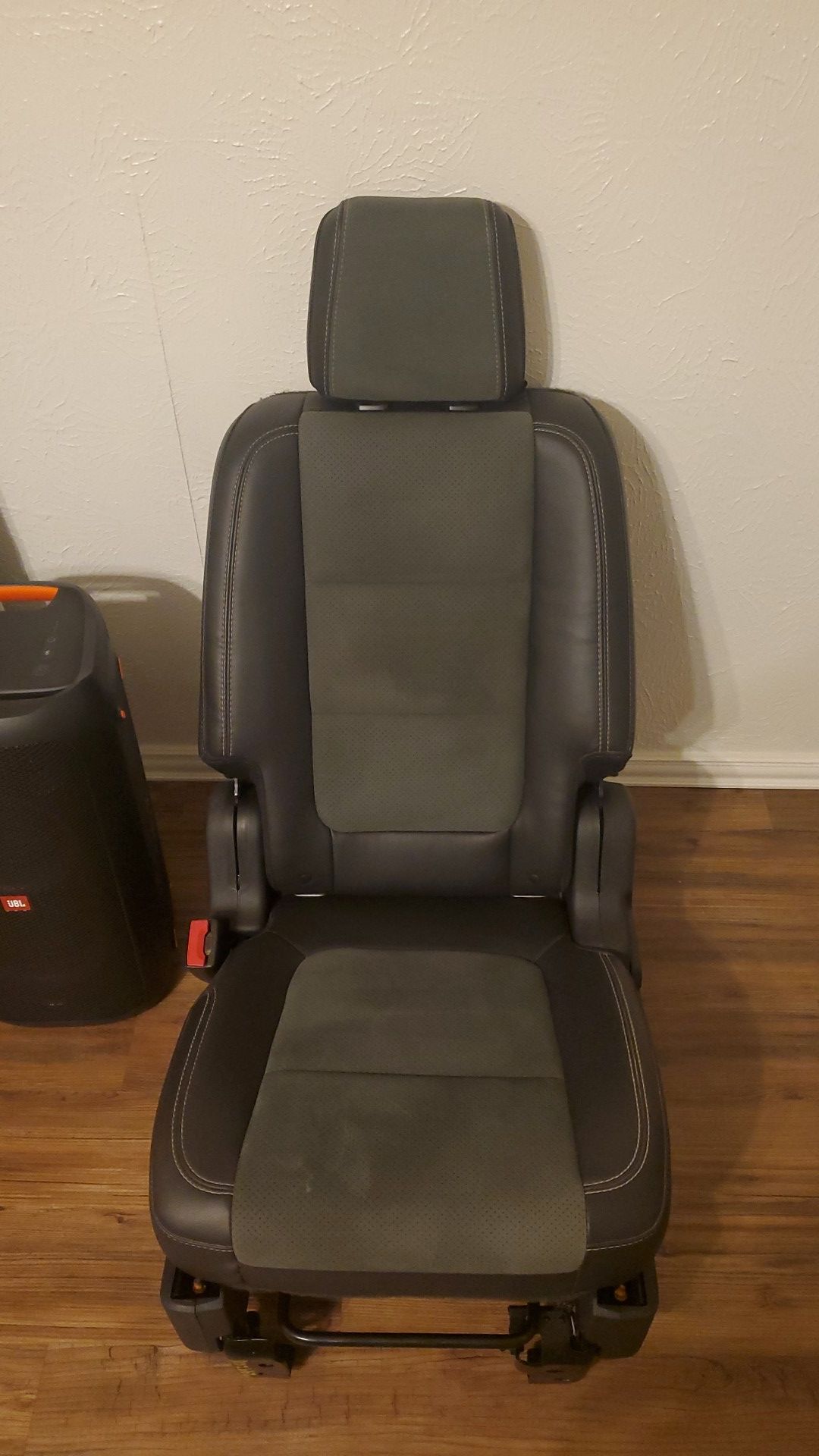 I have a 2nd row driver side bucket seat. It is charcoal black leather with Miko suede perforated inserts. The seat is in very good condition with only a small stain on the suede. No rips or tares. Asking for 100.