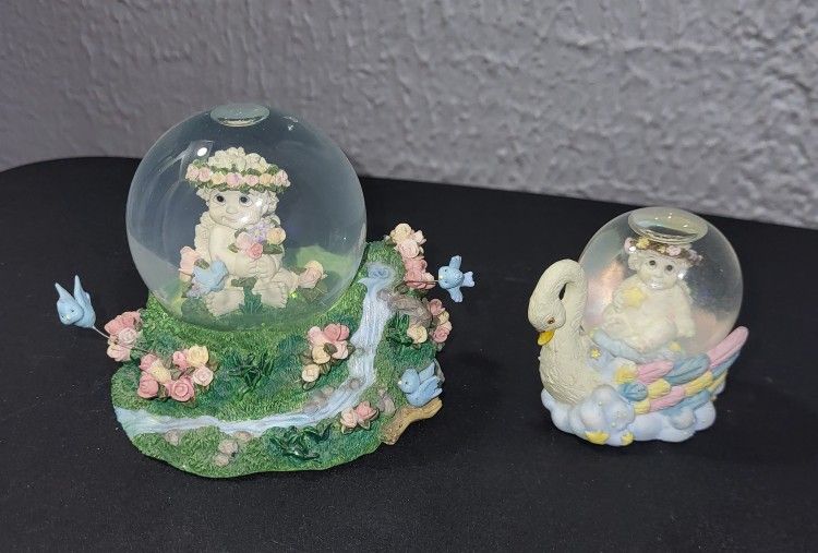 Pair Of Westland Collectible Dreamsicle Cherub Snowglobe