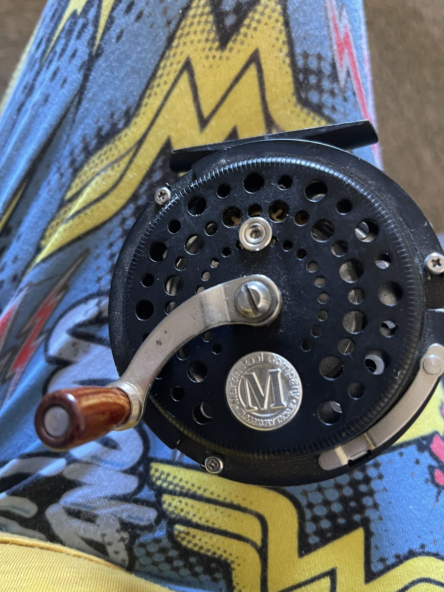 This is a vintage Martin fishing reel, specifically the Model MG-72, featuring a black finish, a central drag adjustment knob, and a sturdy build. Brand: Martin Reel Company Model: MG-72 Category: Fly fishing equipment Features: Includes a line spool and an ON/OFF drag selector Pick up in Huntington Beach