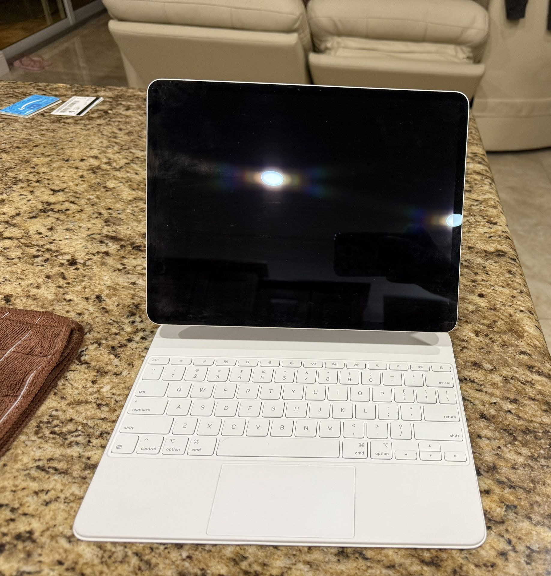 Starlight iPad Air (M3) with Apple magic keyboard. Brand new Ipad, lightly used, excellent condition! Zero scratches and Zero Stains. Comes in box and bag. Includes keyboard.