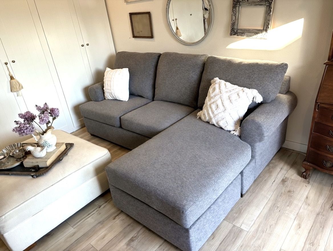 Large Lovely Living Spaces Section Sofa with Reversible Chaise. Left or right facing. * Professionally Cleaned and Sanitized π§Όπ«§ * No Rips, Tears or or Stains. * All Removable Cushions πποΈ * FREE Local Delivery π Dimensions: 8 ft 2 in x 5 ft 7 in Note: White Pillows for Staging Purposes Only Key words; Lovesac, Ashley Furniture, Signature Design by Ashley, Flexsteel, La-Z-Boy, West Elm, Pottery Barn, Crate & Barrel, Arhaus, Restoration Hardware (RH), Article, Burrow, Joybird, Albany Park, BenchMade Modern, Medley, Sixpenny, Interior Define, Sundays, CB2, Maiden Home, Room & Board, 7th Avenue, Castlery, Apt2B, Mitchell Gold + Bob Williams, Natuzzi Editions, Palliser, Southern Motion, Parker House, Bassett, Bernhardt, Hickory Chair, Stickley, Sherrill Furniture, Hancock & Moore, Bradington-Young, Taylor King, Classic Leather, Sabai Design, Inside Weather, Homebody, Cozey, Living Spaces, IKEA.