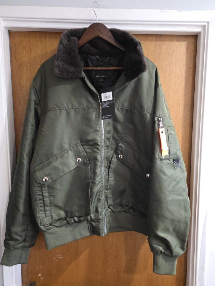 Men's Pilot Aviator Jacket XL Army Sherpa Collar
