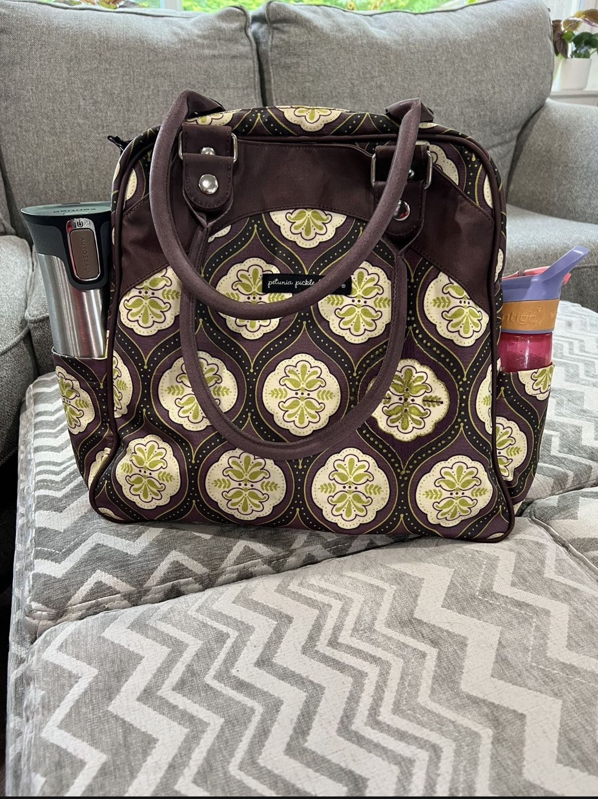 Genuine Petunia pickle bottom diaper bag, like new pristine condition inside and out. This is a coated canvass bag which is a step up from the regular canvass bags. Retailed for $275. Shoulder/handbag carry or convert to the backpack mode in a flash. Petunia doesn’t make these anymore but I much prefer this style to the new ones. Plus this adorable pattern with the decorative stitching detail in the front (last 2 photos) 2 bottle pockets, 2 large slip pockets (front and back, where the handles attach) these slip pockets are large enough for a full size magazine, a slim laptop, or a tablet. Carry both! They will easily fit. This was my favorite style of Petunia bag and I had many. I loved them. I want to still carry it but I’d have to get another baby! 🤣. I truly appreciated how easy this bag made it to be an on-the-go mom with tots. This particular bag was a favorite and I babied it, and it was carried only 2-3 times total. It’s in pristine condition and that’s is rare for a diaper bag! Don’t pass this up. This would also make an adorable handbag or a work bag if you’re carrying a pump to work. Also would make a wonderful gift for a new mom!