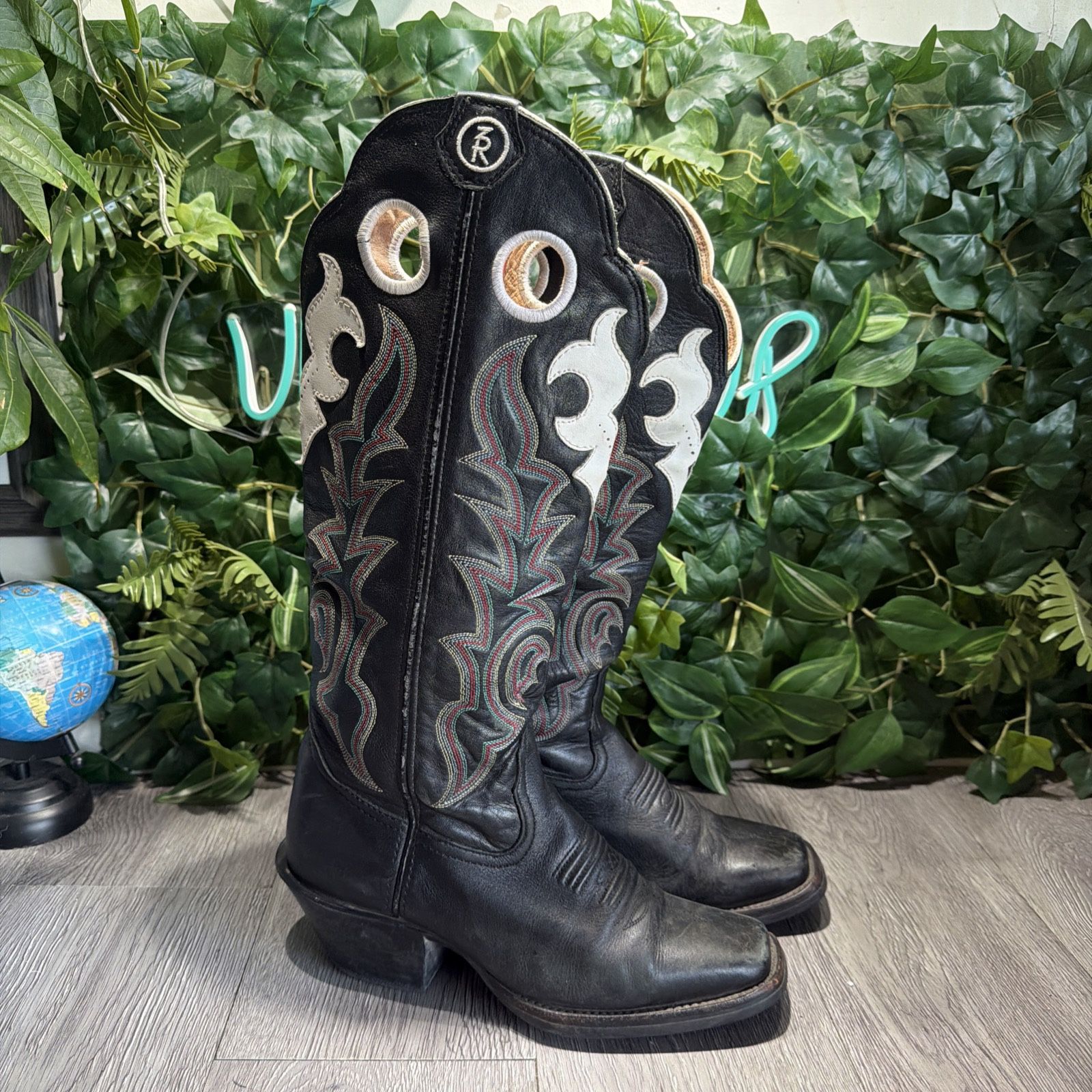 Tony Lama Womens Buckaroo 3R Tall Western Boots Black Leather Cowgirl Size 7 B