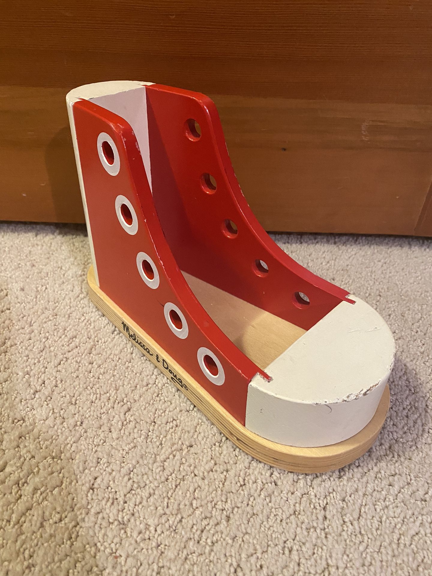 Melissa and Doug shoe tying model, needs new shoelace, pick up in Woodinville