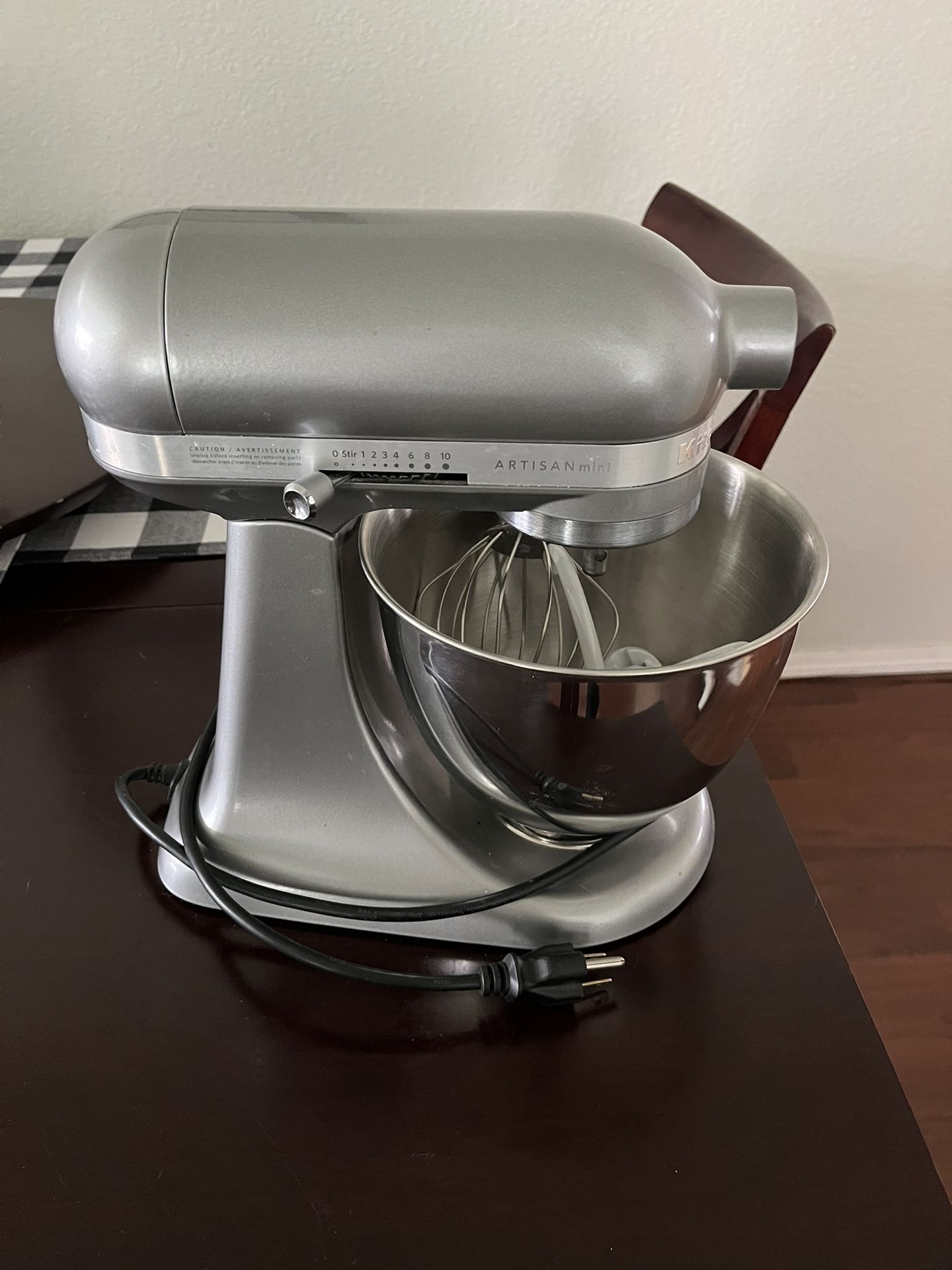 Lightly used. Smallest KitchenAid mixer. Missing front attachment plug. LOVE this mixer Cash please