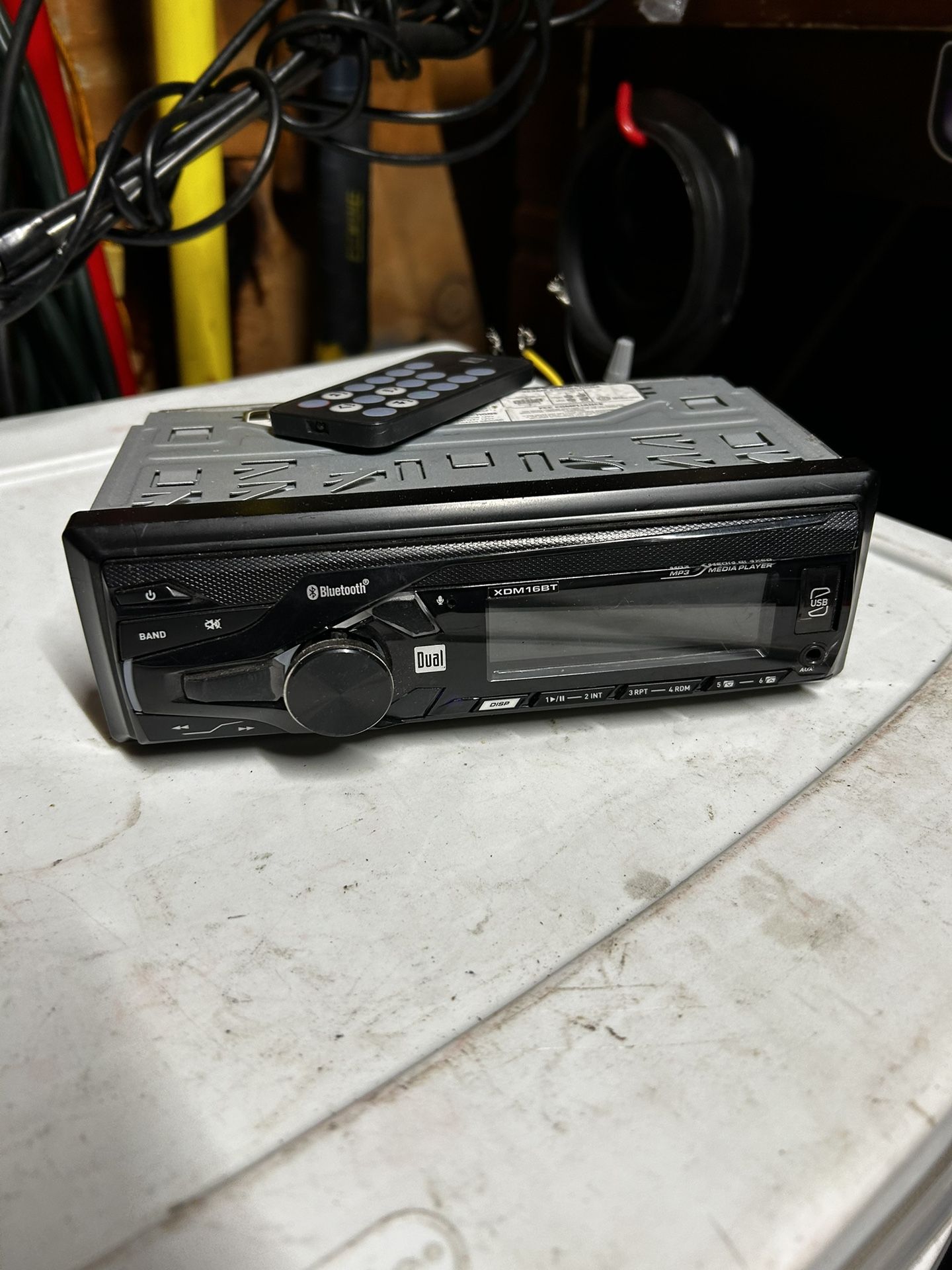 Good condition light use. Single din Dual car radio. Plays Bluetooth MP3 and Am Fm radio. $20