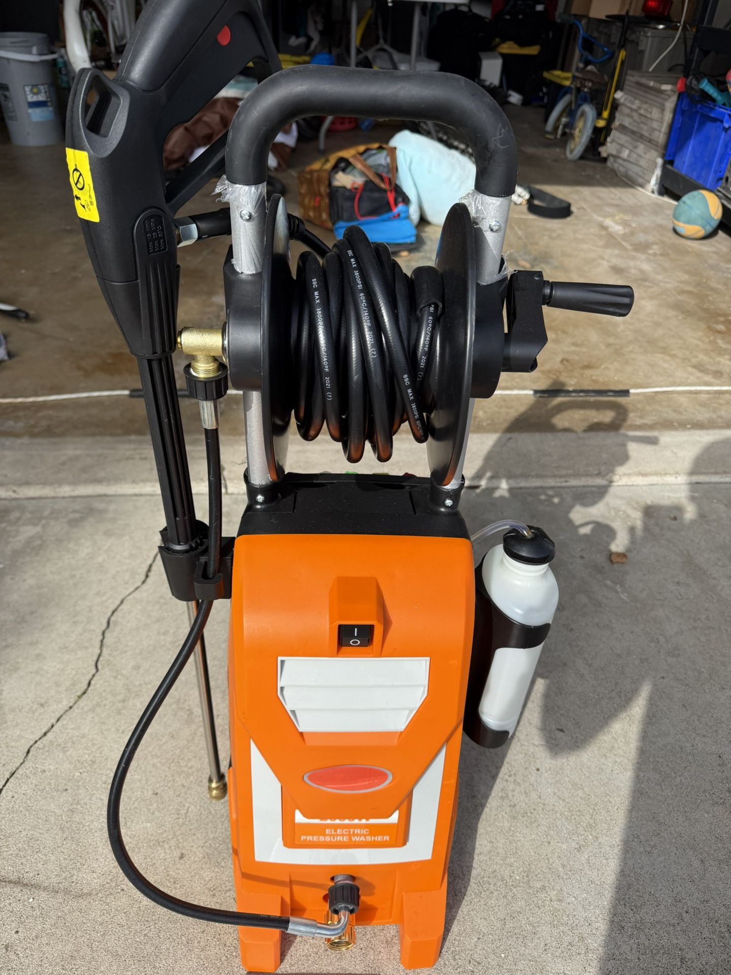 Commercial 2000W Pressure Cleaner, Power Cleaner Electirc Powered with 5 Nozzles & Foam Bottle & Hose Reel for Home. Retails for $69.99. Used once. Received as gift but I already have one.