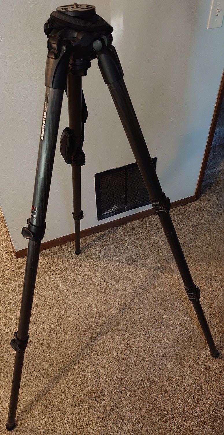 This really solid Manfrotto MT057C3 tripod is in very good shape. It's the perfect companion for your heavy photo gear and yet it is convenient to carry around when folded. It's tall so I was able to use it in slopes when it's full extended (the head comes at the perfect height so you don't need to kneel). I won't be shooting Large Format anymore so I have no use for it. Does not come with the center column. Sells new for $960 Asking: $650 OBO, cash only. Serious buyers only. Will meet in the Hillsboro area. More details: Key Features Head Mount Type 3/8"-16 Male Primary Material Carbon Fiber Load Capacity 44.1 lb / 20 kg Maximum Working Height 61.8" / 157 cm Max Height without Center Column 52" / 132.1 cm Minimum Working Height 8.7" / 22.1 cm Closed Length 24.4" / 62 cm Weight 6.1 lb / 2.8 kg Head Mount Type 3/8"-16 Male Leg Lock Flip Lock Leg Sections 3 Leg Positions 3 Positions Foot Features Spiked, Retractable