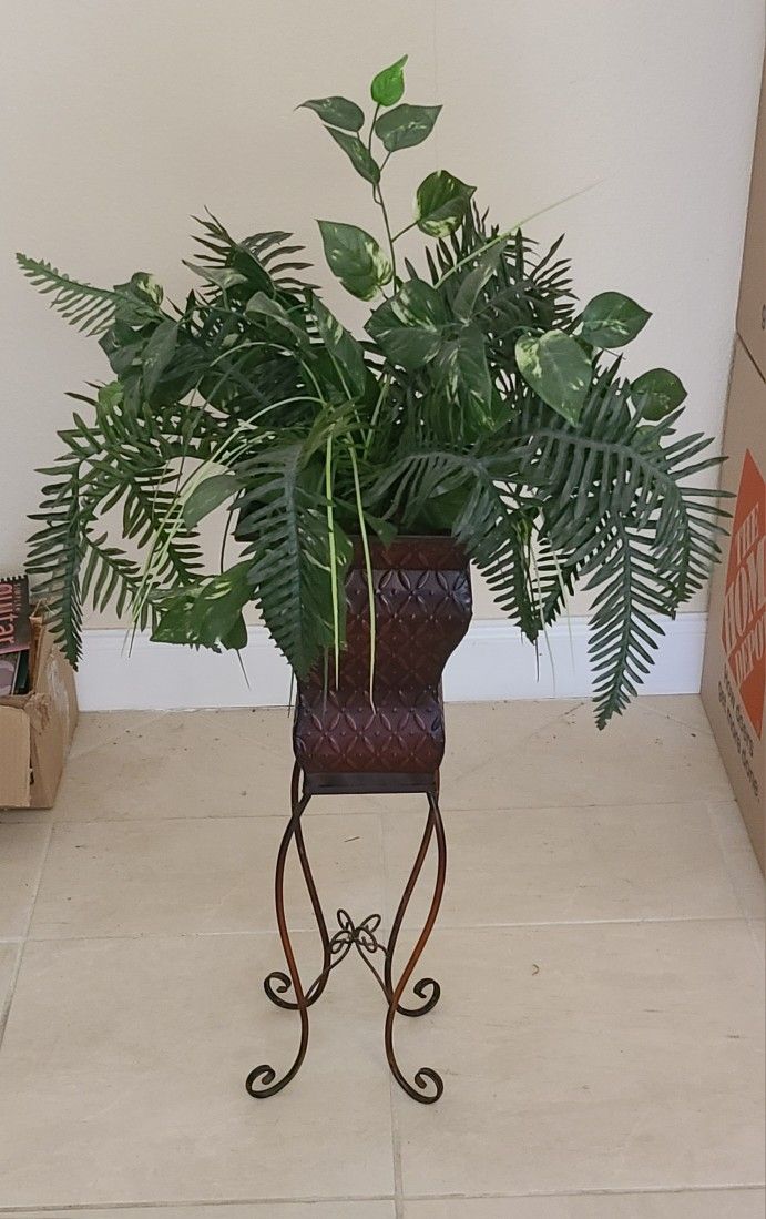 This decor palm stand will add an elegant touch to any room or hallway or foyer. The palms are plastic and the stand is metal. J7st needs dusting and a happy home. Sales for $40.