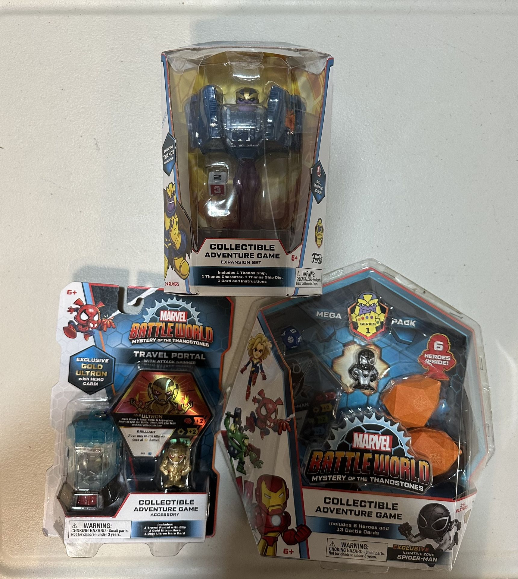 Including 3 packs: Thanos ship showdown Travel portal with Gold ultron hero and card Mega pack with 6 heros and 13battle cards