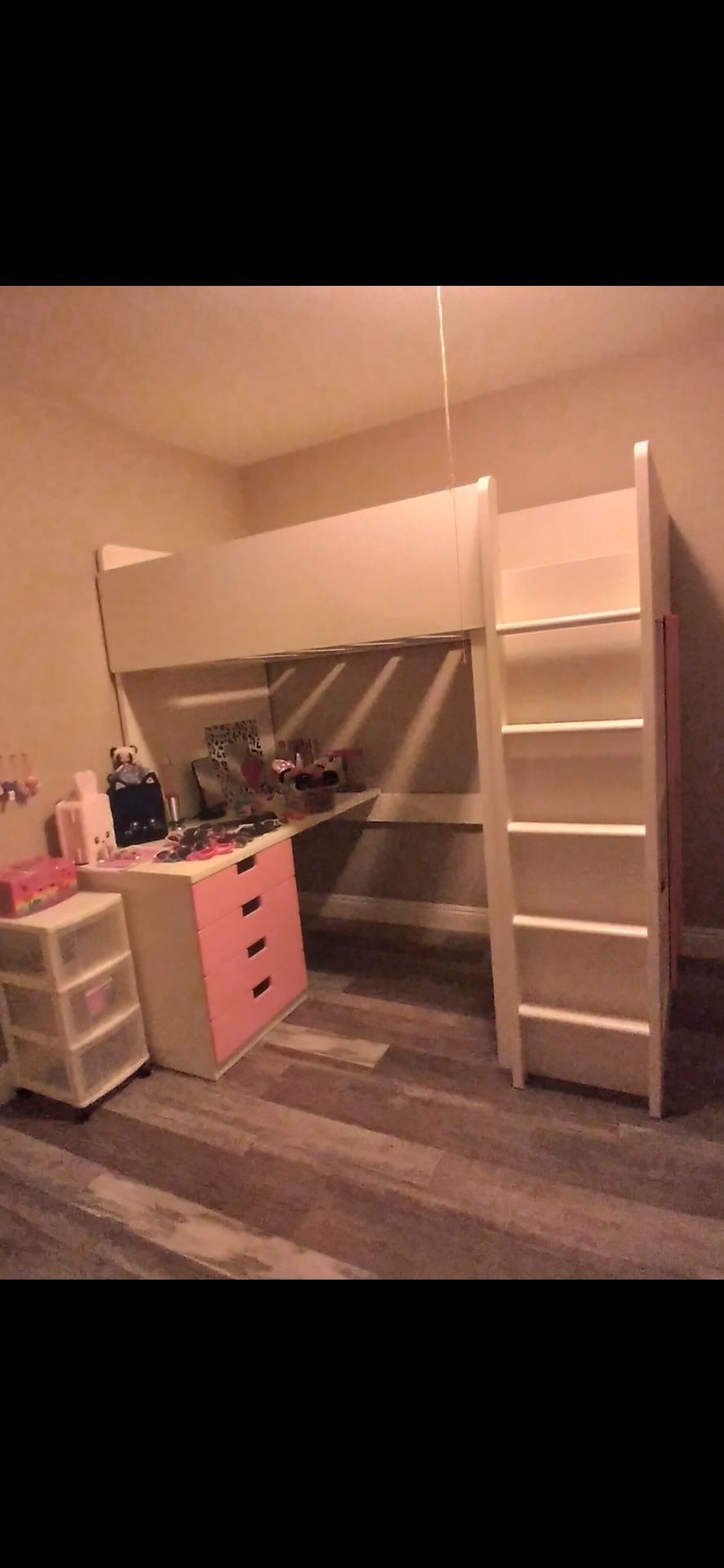 White and pink Bunk/Desk Combo with lots of storage Pick up only