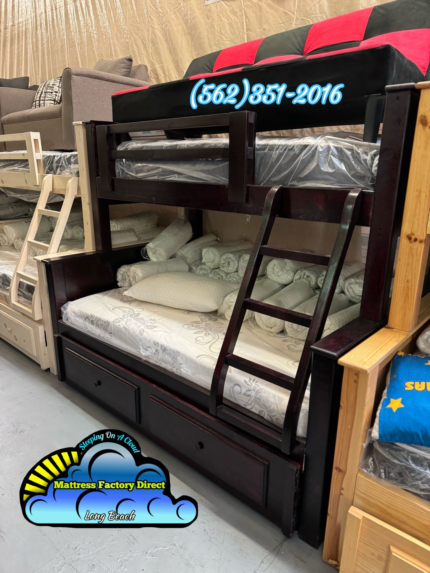 Twin Full Cherry Bunk Bed With Trundle And Mattresses Colchones Nuevos