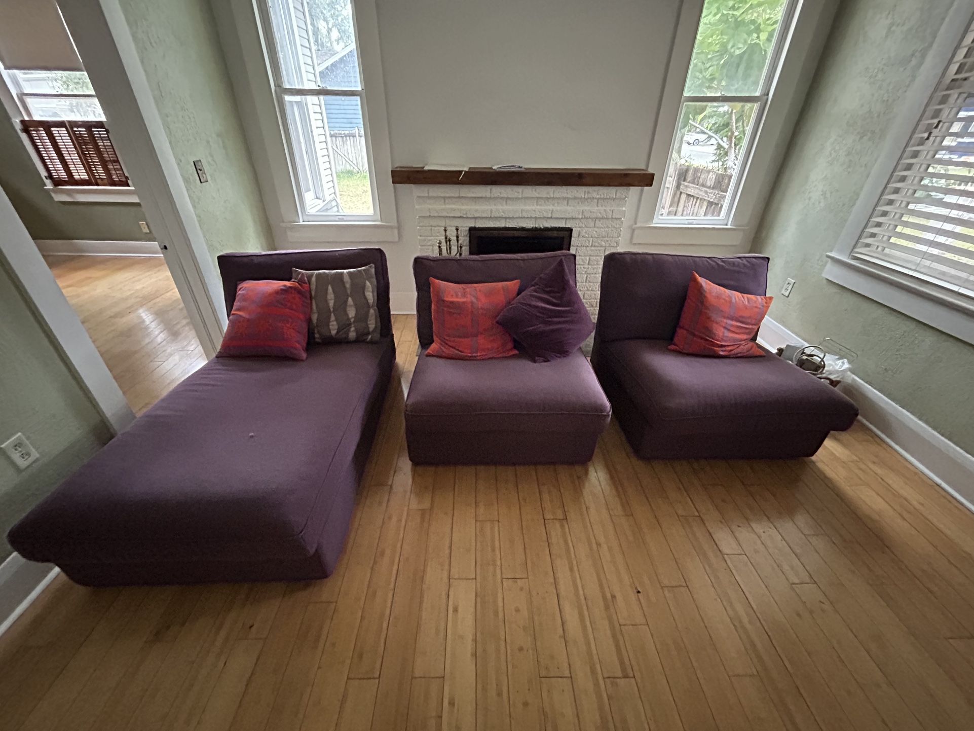 Purple sofa chairs. $80 for all 3. $40 separate.