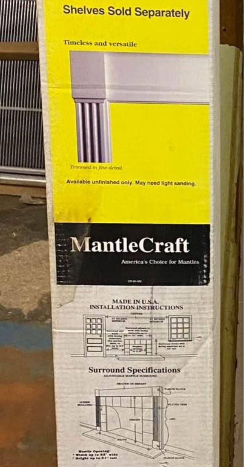 The Craftsman Series mantle surround, available in two styles. These are unfinished(as seen in last photo) to be stained or painted to best suit your space. *Measurements are shown on box in photo. Reclaim NW 7639 SE Foster Rd. 97206 Hours: Tues.-Fri. 8:30-5pm / Sat. 10 - 5pm / Sun. 11 - 5pm / Mon. closed Our warehouse and yard stocks a wide range of reclaimed lumber, lighting, hardware, doors, windows, architectural salvage, a large inventory of surplus lumber, materials and rare finds.