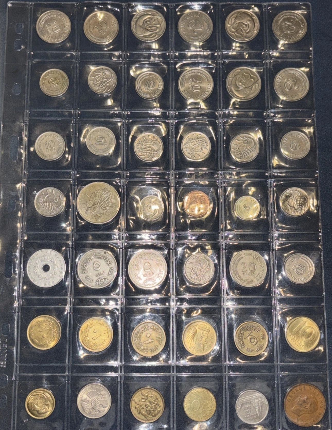 Most of the coins are uncirculated or very close too. 10 Singapore 20 cent coins 13 Singapore 10 cents coins 1 1973 Singapore 1 cent coin 2 Singapore 5 cent coins 1 Singapore 50 cent coin 1974 1 Egypt 5 piastres 1972 UNC and one from 1967 circulated One 1993 ruble 10 coin One israel 10 agorot coin 1973 20 lepta 1966 2 Egypt Arab Republic 10 milliemes, UNC, KM-435 One circulated 1989 Thailand 1 baht New Zealand 1944 half penny 10 centimes France 1974 1 Egypt 5 milliemes 1960 2 different EGYPT 10 MILLIEMES - FAO food and agriculture 1976 food and agriculture Egypt coin. Egypt 5 Milliemes 1973/1975 Mule – Int’l Women’s Year The product is a collection or lot of world coins. These coins are from various countries and regions around the world, making up a diverse and unique collection for any coin enthusiast or collector. Each coin represents a piece of history and culture from different parts of the world, adding value and interest to any collection. Whether you are looking to start a new collection or add some variety to your existing one, this assortment of world coins is sure to provide hours of enjoyment and learning.