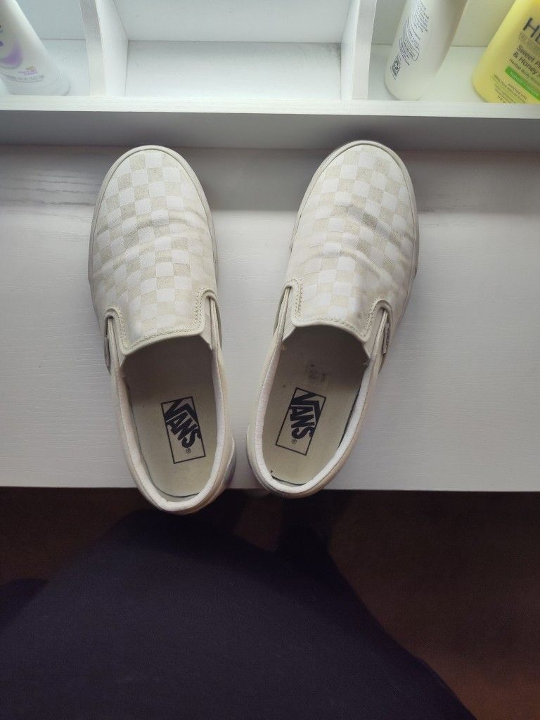 Vans White And Gray Checkered Slip Ons