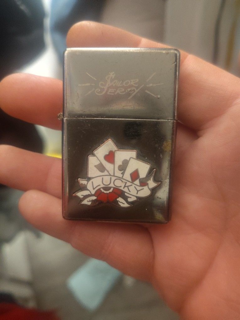 This is a Limited Edition lighter by Sailor Jerry from the 2007 collection. Features a Lucky playing cards design. This lighter comes empty with no liquid and can be refilled for extended usage.