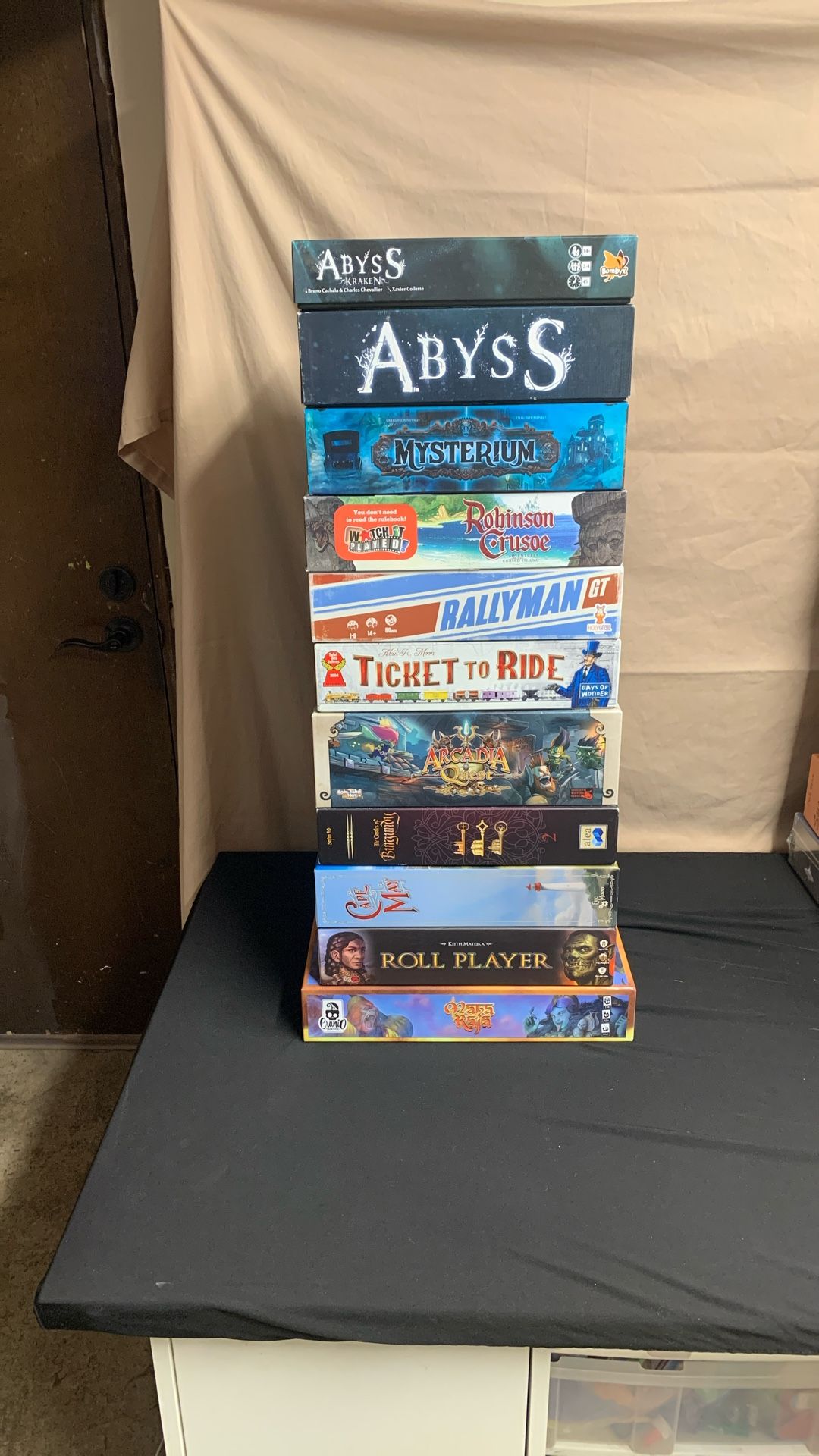 10 board games $15ea. Or $120 for all Maha Raja Roll Player Cape May Castle of Burgundy (ks) Arcadia Quest Ticket to Ride Rallyman GT Robinson Crusoe Mysterium Abyss with Kraken expansion Meet up at Guardian Games Aloha or Portland Cash or Venmo. Check out my other posts Thx for looking.