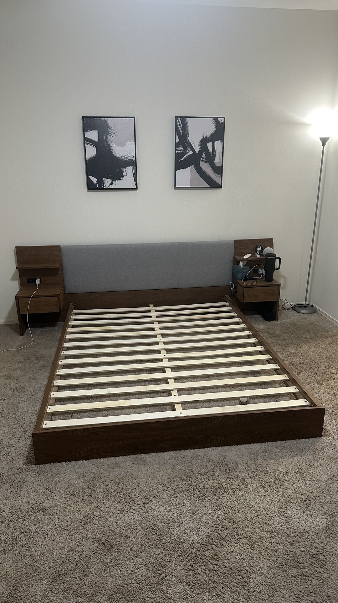 I’m selling my queen bed frame. Comes with outlets in each side of the bed's nightstands. Mattress not included.