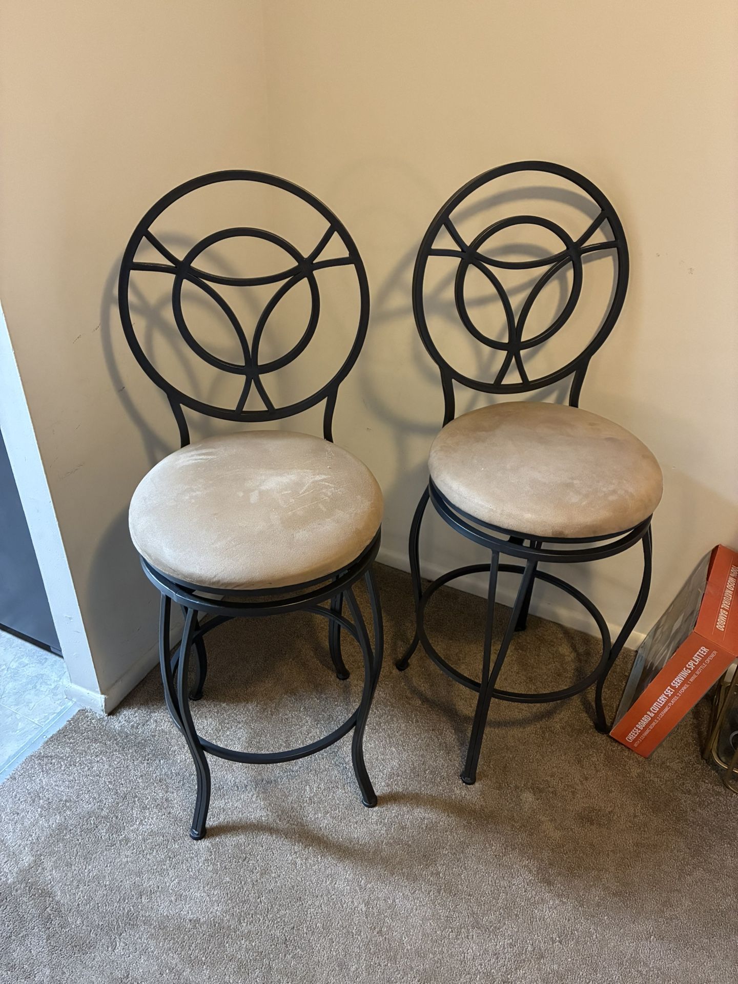 ~2 glass top end tables for bedroom $20 ~2 pictures (1set) $15 ~1 Gold wine Rack $25 ~2 pictures (1set) $15 ~2 pictures (1 set) $15 ~4 pictures (1 set) $15 ~2 Bar stools $25 *Serious inquiries only. *Cash only