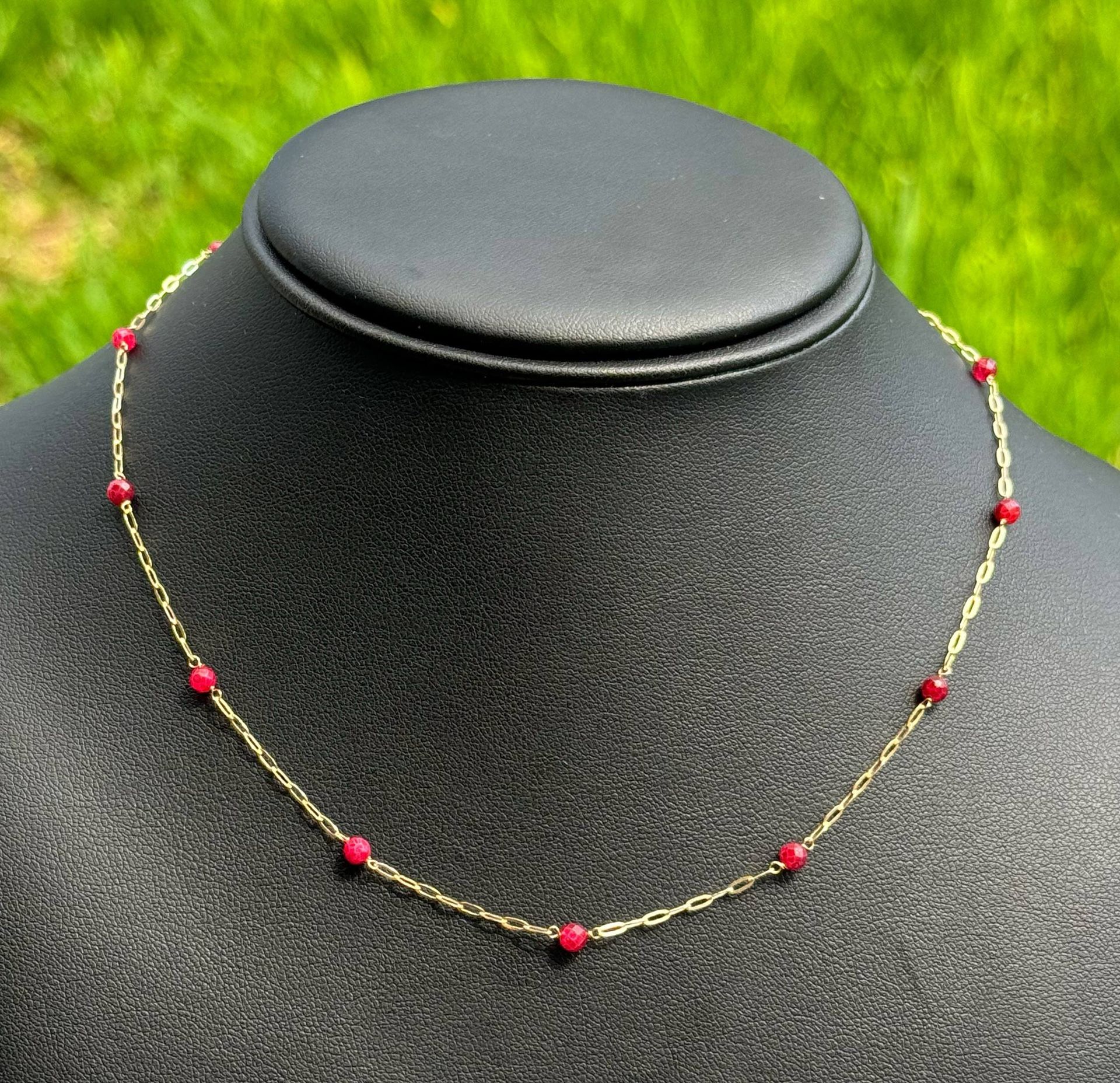 Jewelry 14k solid Yellow Gold PaperClip ποΈ link 16.00β Chain necklace Pink Beads 1.70 grams 3.50mm