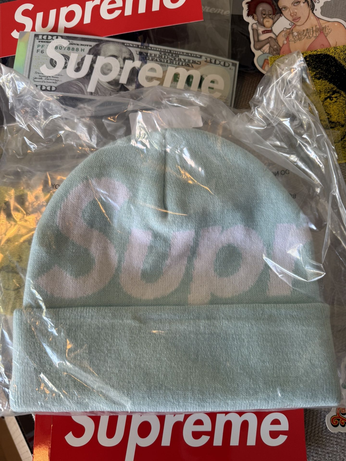 Supreme Big Logo Beanie Light Blue