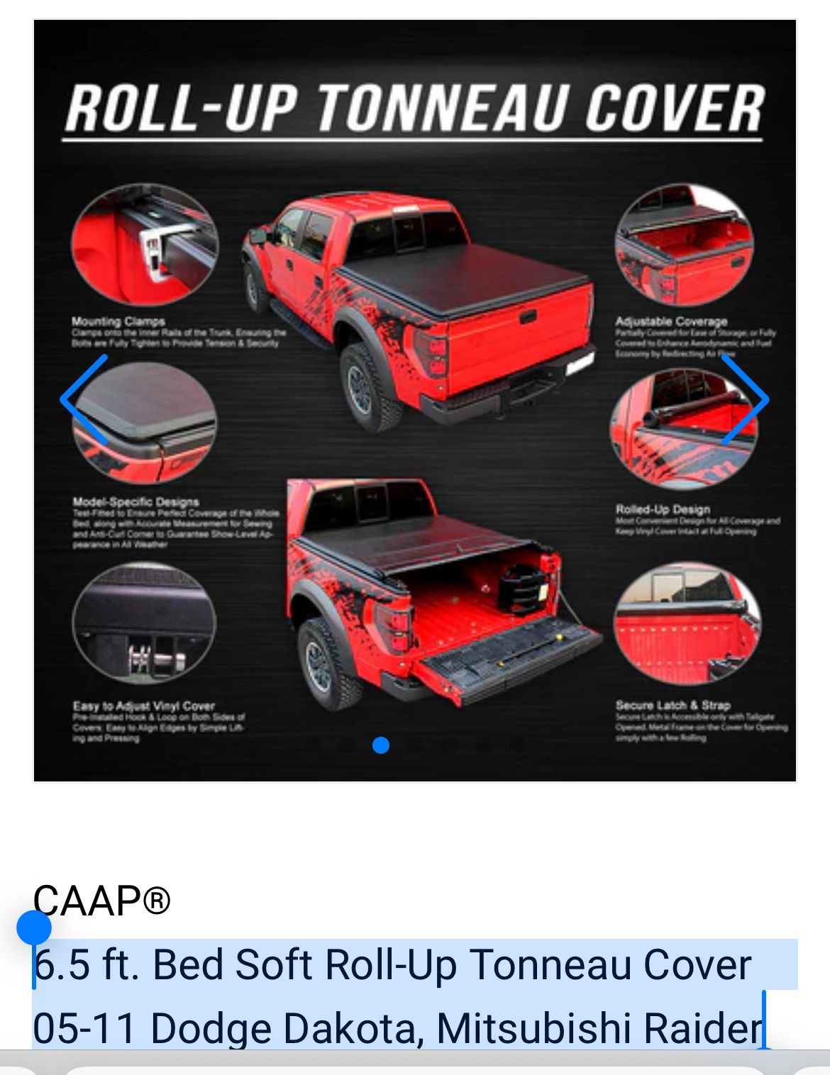6.5 ft. Bed Soft Roll-Up Tonneau Cover 05-11 Dodge Dakota, Mitsubishi Raider