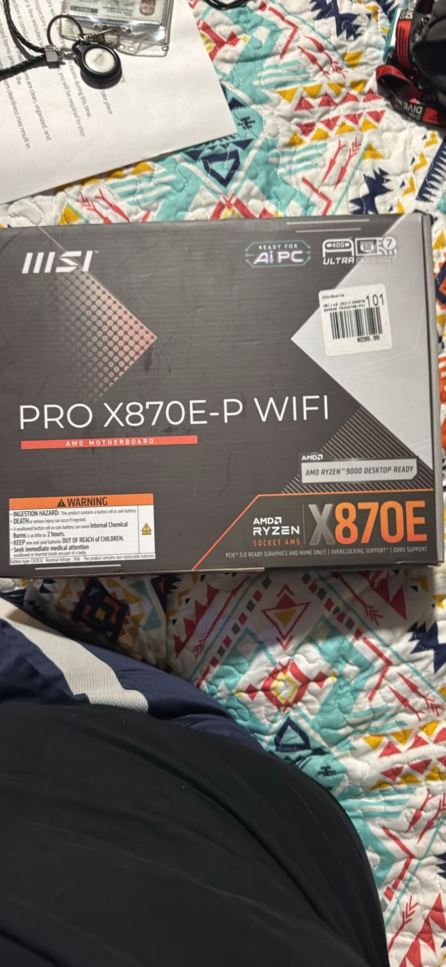 Price: $190 FIRM Location: San Pedro, CA Meet-up only – NO shipping Selling my MSI PRO X870E-P WIFI motherboard. Used for ~2 months, works perfectly. I upgraded to an ASRock Taichi X870E for heavier overclocking—nothing wrong with this board at all. Great choice for anyone building a Ryzen 7000 / 8000 / 9000 series AM5 system without paying flagship prices. ⸻ Key Specs / Highlights • AM5 Socket – Supports Ryzen 7000 / 8000 / 9000 CPUs • X870E Chipset – PCIe 5.0 GPU + Gen5 NVMe support • DDR5 Memory Support (EXPO and Intel XMP compatible) • Built-in Wi-Fi + Bluetooth • Strong VRM design – very stable for gaming & daily use • Multiple M.2 slots + USB-C • Clean BIOS, easy setup ⸻ Condition • Adult-owned • Never abused, no bent pins • Pulled from a fully working system • Ready to install ⸻ $190 FIRM San Pedro area – local pickup only No shipping, no trades