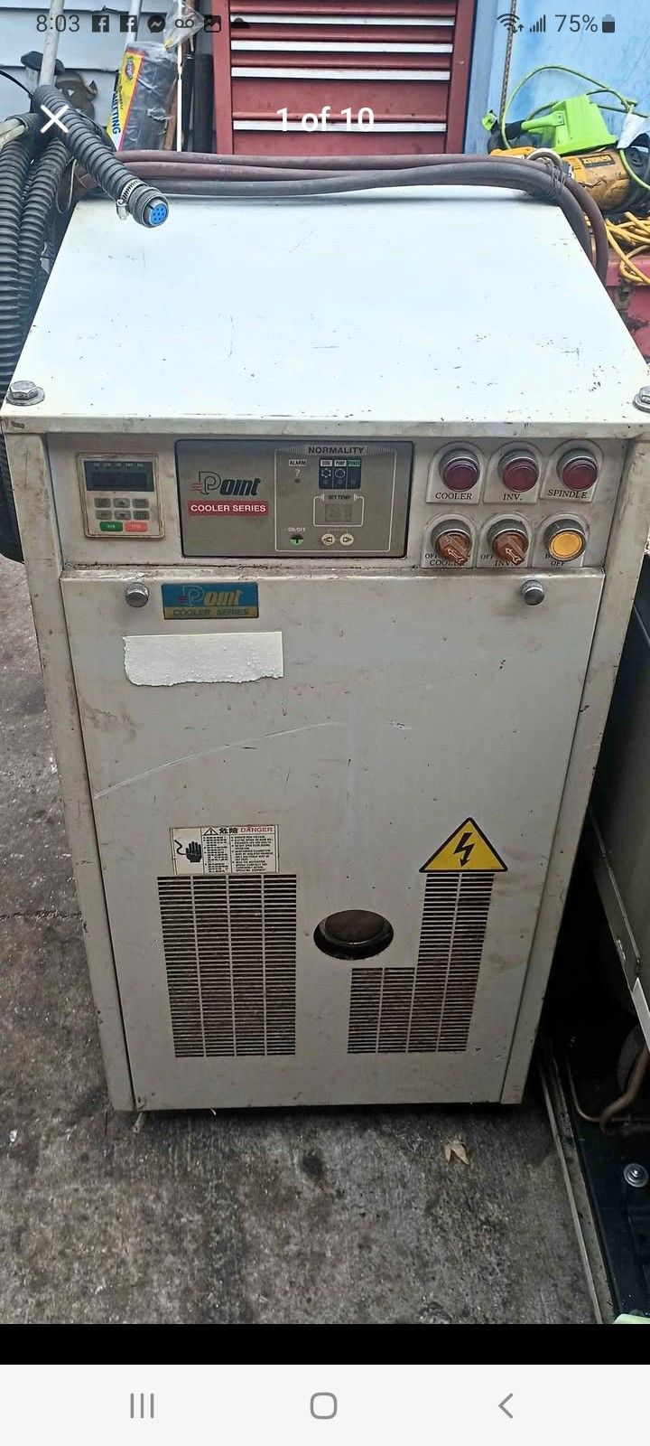 In real good condition, on Casters. Works good. 240V, ready for install. Comes with lines and gauges. Ask for Wendy Thank you