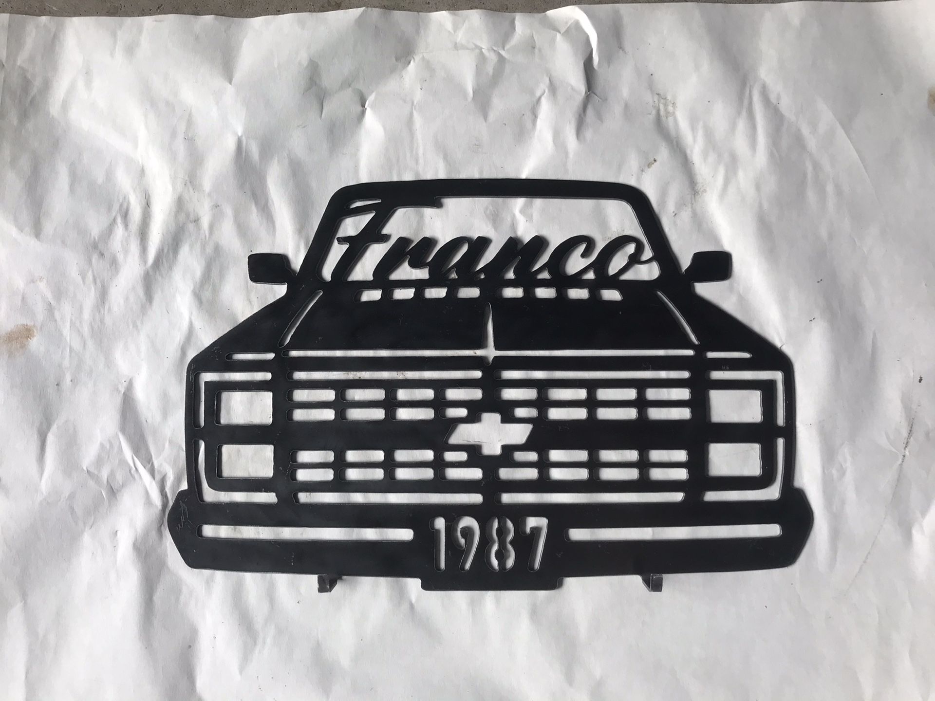 Chevy truck or blazer plasma cut with key hooks made out of steel 14 gauge thick measures 15” wide by 10” height, can add your name on windshield or without and add year and add more key hooks Check my page i have more plasma cut stuff