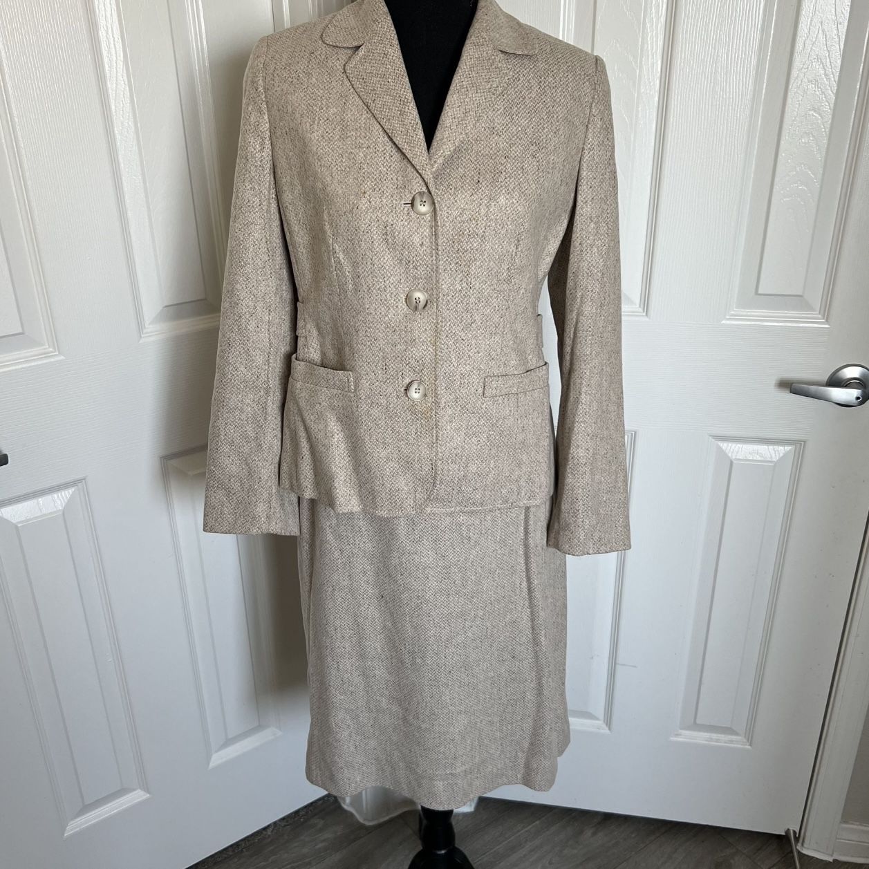 Click ππΌ SEE MOREππΌ for full description. A cozy vintage suit by Ann Taylor Loft. This is a 2 pc tweed outfit in tan. The jacket is lined with two pockets. It has a half belt on the back. The skirt has a zipper closure in back, and is also lined. It features several pleats at the bottom hem, adding class to the entire outfit! Both are a wool blend and size 8 Petite. The blazer measures 17.5β from underarm to underarm, and 23β from top of shoulder to bottom hem. The skirt measures 16β from side to side laying flat, and 22β from top to bottom hem. Preowned and in good condition. #9 *Comes from a smoke free home *Cash only *No returns or exchanges - All sales final #anntaylor #womensskirtsuits