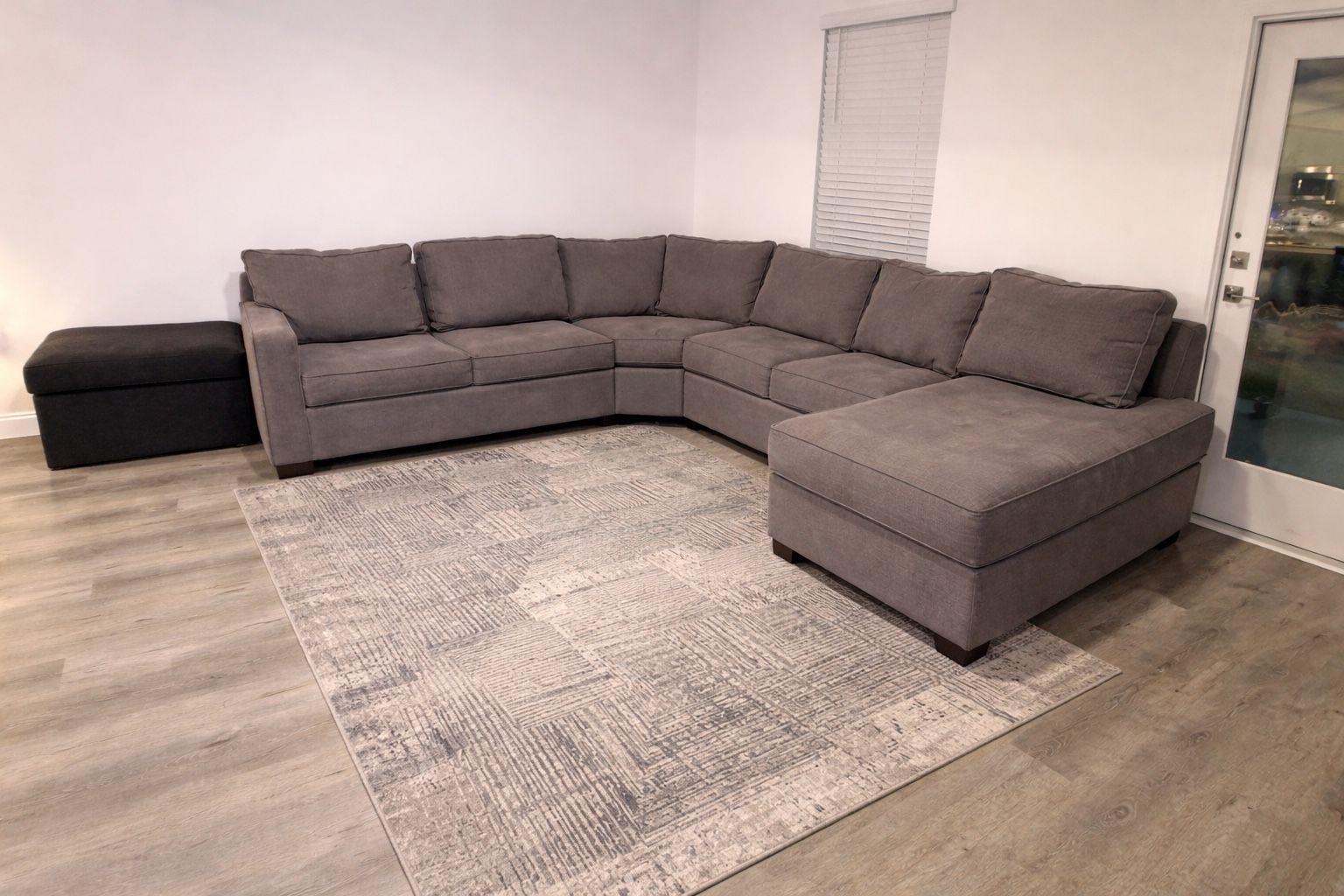 Large Grey Sectional Couch + Area Rug – Great Condition Comfortable and spacious grey sectional couch with chaise lounge paired with a modern grey patterned area rug. Perfect for a living room, family room, or apartment. The sectional has deep cushions and plenty of seating, making it great for relaxing, watching movies, or entertaining guests. Neutral grey color matches almost any decor. Includes: • Large grey sectional couch with chaise lounge • Matching grey patterned area rug Condition: Both items are in very good condition, clean, and well cared for. No major stains or damage. Details: • Modern neutral grey color • Very comfortable with large seating area • Chaise lounge for stretching out • Rug included Price: $900 for the set Pickup required.