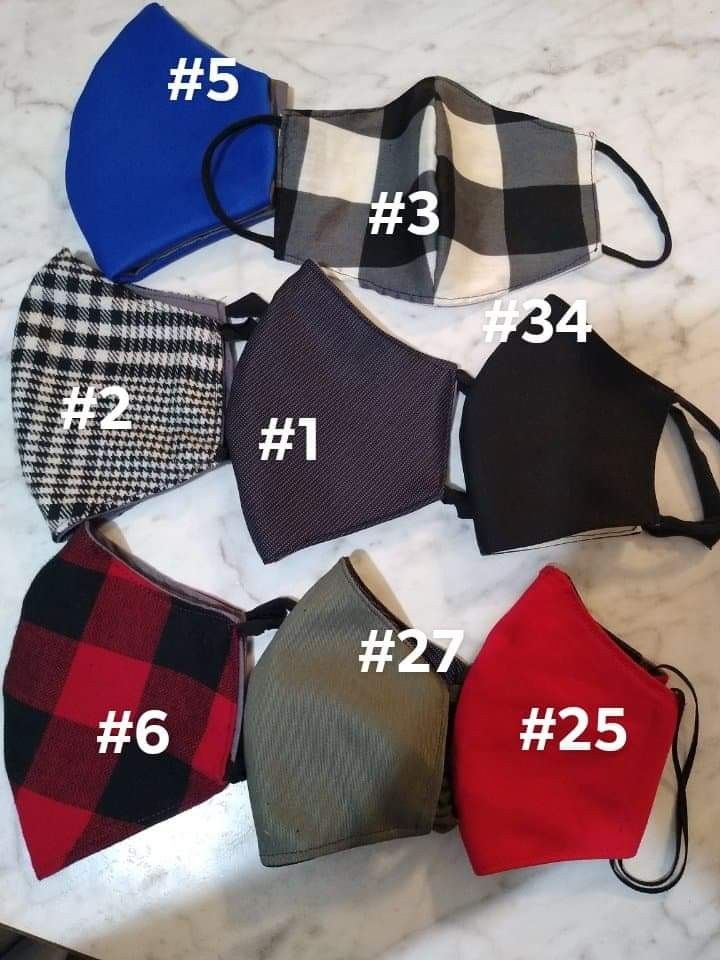 Face mask double layer 100% cotton Reversible Ask for available sizes Xl 15cm $6 L. 14cm M 13cm S. 12cm Xs. 1 & 3