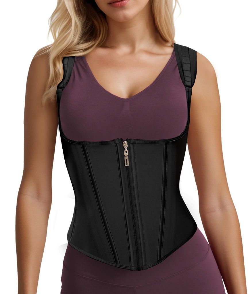 Latex Waist Trainer for Women, Colombian Faja Girdle Shapewear Hourglass Body Shaper,Tummy Control Sports Girdle, Workout Body Shaper with Adjustable Shoulder Strap and Zipper Lining:cotton96% spandex4% core:latex 100%