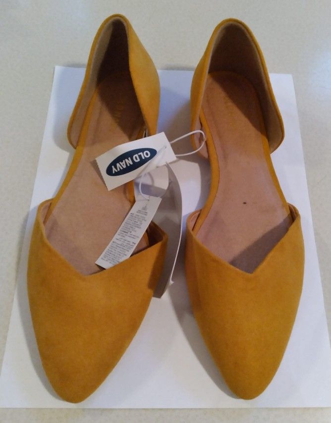 Old Navy (NWT / Formal Flat Women's Shoes).. Condition: NWT.. Color: Yellow & Brown.. Size: 8.. Material: Suede.. No Odors, Pets or Smoke.. "You can send me a good reasonable Offers, and I'll accept it, so please check my entire page for more great Item's, ok, Thanks.." (Negotiable)..