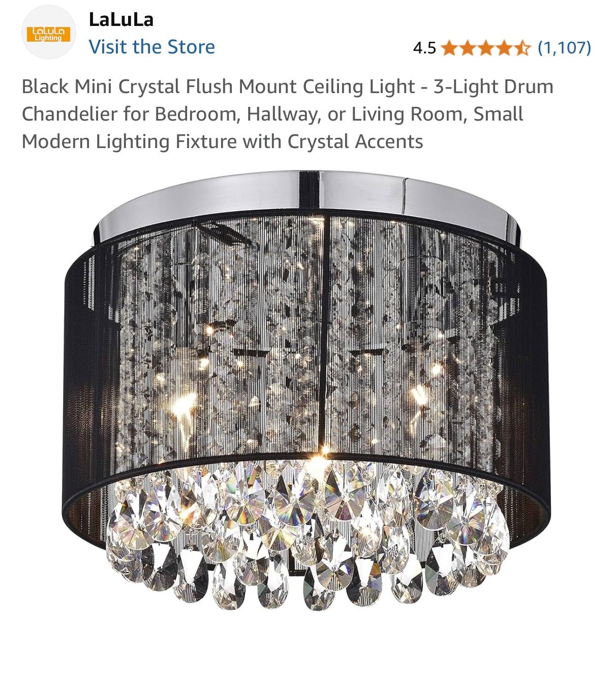 Black Mini Crystal Flush Mount Ceiling Light - 3-Light Drum Chandelier for Bedroom, Hallway, or Living Room, Small Modern Lighting Fixture with Crystal Accents, I bought new from Amazon, currently selling for $61