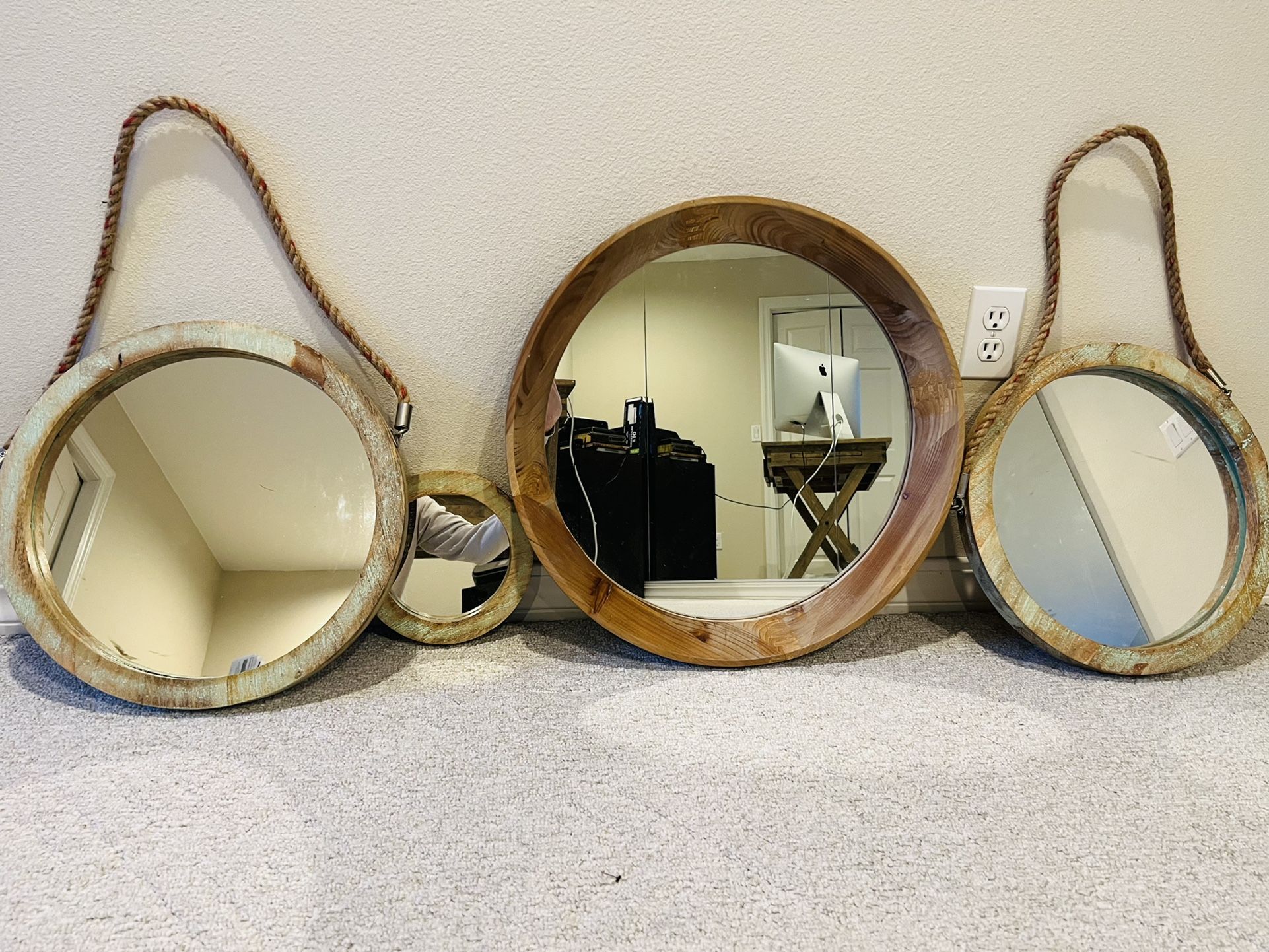 3 Round Mirrors 2 Mirrors 16” / 1 Mirror 7”