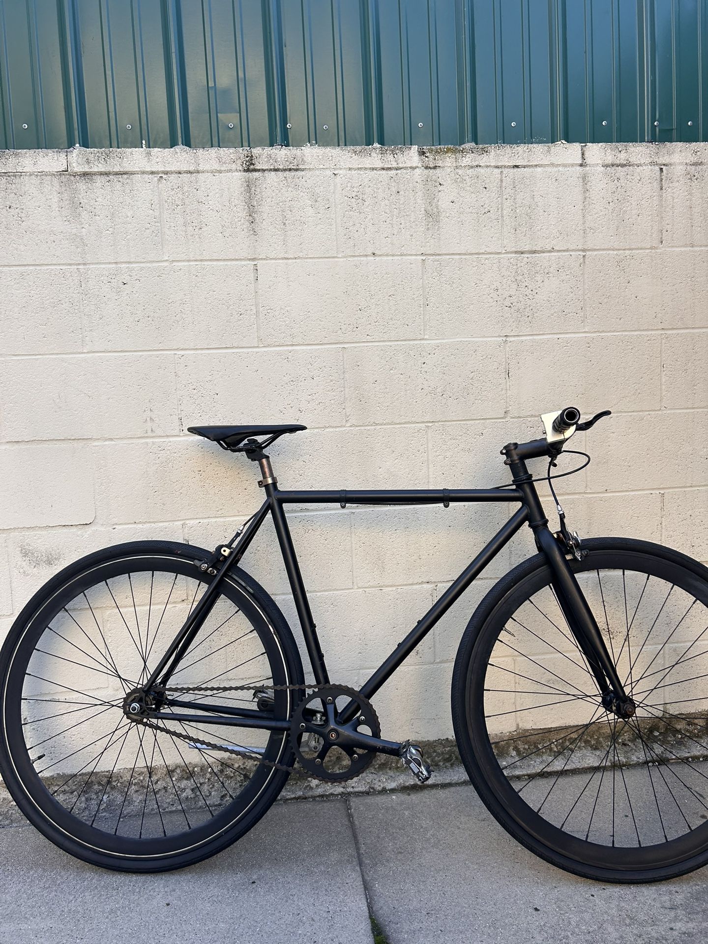 Black fixie or single speed Good condition rides smooth Has front and rear brakes