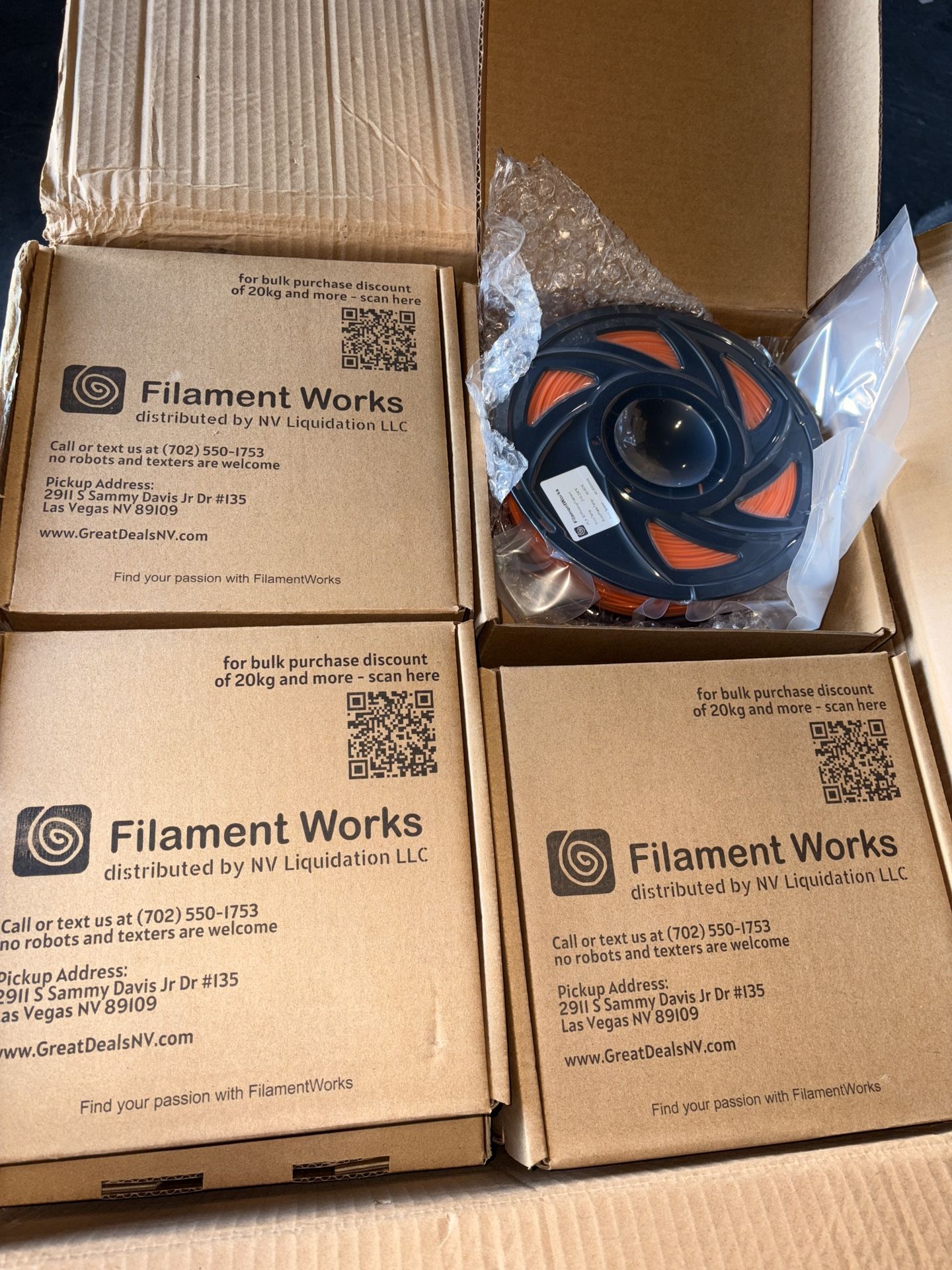bulk pricing (10+ kg, mix & match allowed): 💥 $6.99/kg FilamentWorks PLA (2024 batch – brittle issues, only 38 kg left, clearance deal!) 🚀 $7.99/kg FilamentWorks PLA (2025 batch – improved formula, restocking Feb 28, 2025) ⚡ $10.95/kg iSanMate PLA Rapid Pro ($15.99 on Amazon) 🛠️ $14.50/kg TPU ($21.99 on Amazon) 🌈 $14.99/kg Rainbow PLA ($29.99 on Amazon) We’re open Monday–Friday, 9 AM – 5 PM. Swing by and stock up! 📍 NV Liquidation LLC 2911 S Sammy Davis Jr Dr, Las Vegas, NV 89109 Unit #135