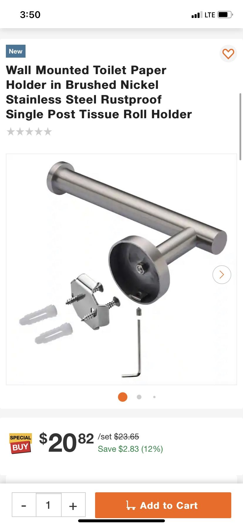 Wall Mounted Toilet Paper Holder in Brushed Nickel Stainless Steel Rustproof Single Post Tissue Roll Holder